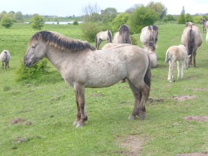 Wanneer ik het wandelpad van de Blauwe Kamer in sla stuit ik al snel op een kudde paarden. Het zijn konikpaarden. De dieren zijn wel gewend aan wandelend publiek, want ze geven geen krimp en ik ga slingerend tussen de kudde door. Zo krijgt het wooord ‘wild’ in combinatie met de Nederlandse natuur een verdiepte betekenis. Via allerhande slinger-bewegingen (ik heb de tijd) kom ik uit bij een vogelkijkhut. Binnen in de hut mag ik naar vogels kijken. Buiten mag dat ook wel, maar hier kun je veilig voor de felle zon en de slagregens en de natte sneeuw rustig rond kijken. Ik gebruik de faciliteit niet alleen voor het kijken naar vogels (met mijn verrekijker), maar ook om een lunch te gebruiken. Halverwege mijn lunch komt een volgende kijker binnen, die zich gelukkig rustig houdt. Een lunch is gauw verstoord. Ik ga verder op pad en kom uit bij de steenoven. Hier zie ik een oude ingang van de lange steenoven. Het is overwoekerd en zal dienen als veilige haven voor allerlei wild, in meerdere maten. Er staat een rijtje woonhuizen vlakbij de steenoven.