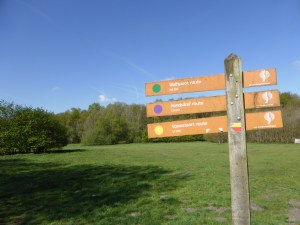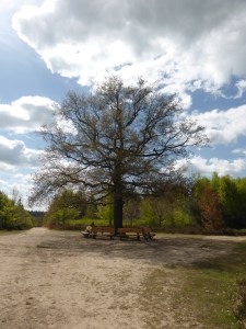 Ik krijg de indruk dat het station van Veenendaal – West verdwijnt in de omgeving, onopvallend. Tussen winkelcentrum en een woonwijk met scholen en met een hospice aan de rand van de bebouwing. Tegen een tafeltje buiten staat een step. Ik vermoed dat het geen vervoermiddel is voor de bewoners van het hospice, maar van een kleine bezoeker. Via de Slaperdijk aan de westzijde van het dorp kom ik de ruimte in, het begin van een lange wandeling door een bosrijk gebied. De wegwijzer wijst mij op drie routes, maar mij valt meer op dat dit een gebied is waar baasjes met honden lopen. Veel auto’s staan geparkeerd langs de rand van dit gebied. Van een hond laten lopen moet je zelf natuurlijk niet in beweging komen en moe worden. Gelukkig zijn een paar bomen verder ook de baasjes en de honden achter gebleven. Tussen de Amerongse bossen treden open ruimten naar voren. Het is wel te merken dat het een zonnige dag is, want het aantal mensen in de bossen ligt hoog. Er zijn tochten op de Heuvelrug geweest waar ik bijna niemand tegen kwam. Winterwandelingen hebben zo hun eigen charme.