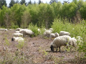 Op de grond kan ik wel zien dat in de as (de open plek) de spaaklanen bij elkaar komen. De as ligt hoog, vanuit dit centrum gaan de lanen naar beneden. Het is hier ongeveer 64 meter hoog. In het midden van de open plek staat een eenzame eik, de eik heeft daar niet zo’n moeite mee en heeft niet te lijden van eenzaamheid. Waarschijnlijk is de eik geplant in het jaar 1792, twee jaar na het begin van de aanleg. Wie komt er op het idee om zo iets te doen? Dat was de eigenaar van het Amerongse Bos, de familie van Reede, die als thuisbasis het kasteel van Amerongen had. Nu heb je aan het onderhoud van een kasteel al je handen vol, maar het werk kon altijd worden uitgebreid met een ander project. In de loop der jaren ging het achteruit met het Sterrebos en dreigde de fraaie structuur te verdwijnen. In het jaar 1990 is begonnen met herstel van de wagenwielstructuur. Veertien jaar later werden allerlei bomen in de cirkel gekapt en werden de randen van de spaaklanen beplant met beuken. Zo is er een krachtige structuur hersteld. Ook de kleine kudden schapen kan nu genieten van het karrewiel en van wat er groeit. De cirkel heeft ook grote aantrekkingskracht op mensen, merkte ik tijdens mijn lunchpauze. Ik loop over een spaak in zuidoostelijke richting en kom aan de rand van het dorp Elst. Hier tref ik een bordje van een grafheuvelroute. Ik let niet op want ik zie geen enkele grafheuvel, waarschijnlijk omdat ik te druk bezig ben met de route. Vanaf de noordrand van het dorp Elst loop ik recht naar het noorden. Bos en bos en af en toe een mountainbikeroute.