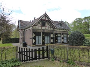 Ik heb inmiddels het Amerongese Bos verlaten en ben aangekomen in het Prattenburgsche Bos. Dit is een landgoed dat in sinds 1694 in handen is van de familie Van Asch van Wijck. De route geeft aan dat ik even van de gebaande weg af kan gaan om iets van het landgoed te zien, dat wil zeggen, iets van de gebouwen. Aan de weg loop ik langs twee huizen. Even verderop tref ik de ingang (gesloten) met aan het einde van een lange laan de Cunerahoeve. Ik besluit om terug te lopen. Liefhebbers kunnen hun hart op halen aan de tuinmanswoning die ik zojuist gepasseerd ben. De luiken dragen de kenmerkende tekens van het landgoed. Daarnaast staat de Ursulahoeve. Op de grens van bos en bos tref ik een bankje, maar ik ben nog niet toe aan een lunchpauze. Rondkijkend vermoed ik dat hier veel scholieren langs fietsen, wellicht onderweg van Veenendaal naar Amerongen en omstreken. Nu gaat het verder naar het noorden, eerst door het bos, dan een smal asfaltweggetje en dan weer de bekende woonwijk in ten zuiden van het station Veenendaal West.