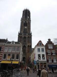 We nemen de trein naar Utrecht en stappen uit op het Centraal Station, dat onlangs is voorzien van een stationsgebouw, via Hoog Catharijne (dat bezig is met een gedaanteverwisseling) komen we buiten aan de zijde van Vredenburg. We hebben het water van de gracht nog niet onder ons zien stromen, maar dat gaat nog wel een keer gebeuren wanneer we door geheel verbouwde Hoog Catharijne lopen. Al spoedig maken we gebruik van een etablissement om iets warms te drinken, dit gebeurt in het boekcafé Lewis (waarbij ‘boek’ gespeld wordt als ‘book’). Via een open verbinding kom je in een christelijke boekwinkel (waarbij ‘boek’ gespeld wordt als ‘boek’), maar door die open verbinding zijn wij niet gegaan. Dit is niet de enige verwijzing naar het christelijke heden en verleden van Utrecht. Op de grond komen wij een mededeling tegen over Zuster Bertken, die hier jarenlang ingemetseld in een kluis heeft geleefd. Wanneer zij 87 jaar oud is overlijdt Bertken en wordt zij begraven in haar kluis. Veilig voor de eeuwigheid.