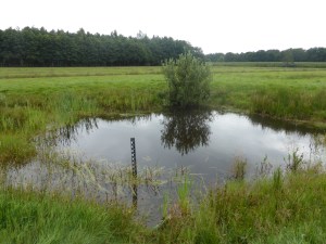Even verderop kom ik in het Nonnenland. Dit gebied was in de oude tijd, de hele oude tijd eigendom van een klooster in De Bilt. Zoals dat gaat wertd in vroger tijden het gebied droog gemaakt, onder anderen door turfsteken en het aanleggen van sloten. En zoals het vaker gaat wordt het daarna weer nat gemaakt, met dank aan Staatsbosheer. Zelfs een millennium oud beekje kwam weer boven water. Ik maak er nog iest van mee bij de waterrijke plasje temidden van weilanden. In de verte zie ik een ree langs het akkerbouwveld rustig grazen. Het kijkt een paar maal op, kijkt in mijn richting en gaat dan verder met grazen. Een rustpunt in een rustige omgeving. Via een overstapje kom ik in het landgoed Venwoude. Er is niet alleee verzameling bomen, maar er worden allerhande bijeenkomsten georganiseerd over het menselijk welzijn, in verband met de wereld om ons heen. Even verderop kom ik op landgoed Pijnenburg. Hier tref ik een klein veldje heide. Ook hier is de stilte aanwezig. Ik kom ook geen andere wandelaars tegen. Het landgoed is in handen van de familie Insinger. Dan denk ik net af te zijn van de familie De Beaufort (op de zuidelijke heuvelrug) kom ik nu bij de Insingers. Geen wonder dat de naam Insinger De Beaufort in sommige kringen bekend is.