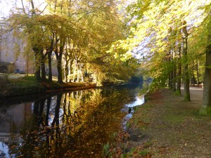 De route leidt mij om de grachten heen, die het kasteel beschermen tegen de boze buitenwacht. Ik ben niet de enige die hier wandelt. Velen hebben moeite om mijn vriendelijke en hartelijke groet op gelijke wijze te beanwoorden. Het schijnt dat een ieder is verzonken in gepeins. Bij landgoederen loop ik nog wel eens het risico dat ik een lange rechte laan tegenkom. Soms kijk ik vanaf de laan naar het grote landhuis in de verte. Soms steek ik een dergelijke laan over, zoals hier aan de westzijde van het kasteel. Vanaf hier ga ik naar het zuiden door de bossen. Ik passeer Oost-Indië, dat minder warm is dan ik mij had voorgesteld.