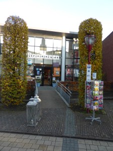 We gaan dwars door het oude centrum. Op Verlaat passeren we een echte boekwinkel, met een inpandig VVV. Hier heb ik het routeboekje van het Zuiderzeepad gekocht. Via straatjes en steegjes komen we in de buurt van de voormalige eierveiling. Nu is er een kledingwinkel ingetrokken.
