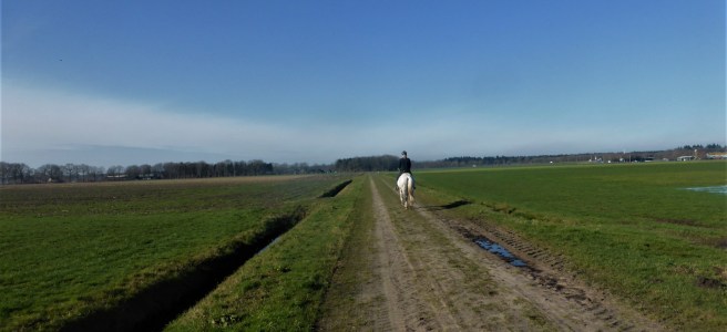 In het buitengebied ontmoet ik stilte, zelfs de treinen die ik in de verte door het landschap zie gaan maken nauwelijks geluid. Bij het lopen probeer ik mijn linkervoet goed neer te zetten en af te rollen. In mijn onderrug, aan de linkerzijde, doet een spier niet helemaal wat ik wil. Klussen heeft zo zijn nadelen. Ik probeer geen compenseergedrag te vertonen en rechtop te lopen. Van Lieving ga ik langs het Makummer molenstuk, ik zie inderdaad een molen.
