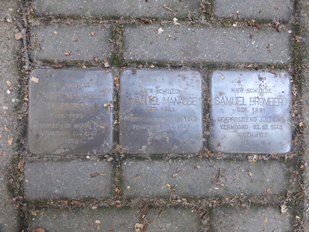 Even verderop is er een teken van meer recente bewoning. Hier staat een NIVON Natuurvriendenhuis: met de naam De Bosbeek. Mijn aandacht wordt getroffen door een informatiebord onder een luifeltje. Op het bord staat de route van het Trekvogelpad. Echter valt mijn aandacht meer op de klinkers waar ik op sta. In het klinkerpatroon zijn drie Stolpersteine verwerkt. Drie keer een naam. Drie keer een datum. Drie mensen die hier een veilig onderkomen hadden gezocht, maar toch zijn opgepakt en de laatste dagen van hun leven beleefden. Drie stille getuigen. Voor je het weet loop je het onder de voet en ga je zonder te struikelen verder. Maar het zijn drie namen, drie mensen, waard om even bij stil te staan. Het Trekvogelpad loopt wel door.