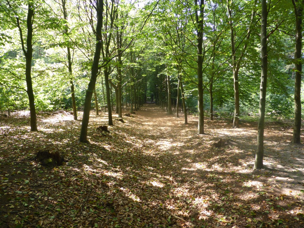 De start van deze wandeling uit het boekje ‘Wandelen rond Ede’ begint bij de Oude Kerk in het centrum van Bennekom. Er zijn aardig wat mensen op de been in het dorp, waar veel winkels zijn. Al na een paar hoeken omgeslagen te hebben kom ik in rustiger vaarwater. Dat is zeker het geval in deze koninklijke buurt en zeker wanneer ik het spoor van Prins Hendrik volg en zijn laan in loop. Al spoedig loop ik in het bos. Eénmaal in het bos (met fietsende ouderen) ga ik al snel een smal bospad op, steek ik de Dikkenbergweg over (heel rustig) en dan weer een bos in. Het is heel rustig. Ik vermoed dat de stijgende temperatuur het aantal wandelaars naar beneden brengt.