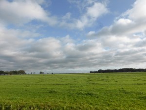 Ik steek de Zuiderzeestraatweg over, nog steeds de variant Oost. Aan de overkant ga ik de Broekkampstraat op en dat blijkt fout te zijn. Ik had meer naar rechts in het land moeten lopen. Even verderop zie ik in het groen een paaltje met een markering en zo kom ik weer op het rechte pad. Daarna ga ik van het groen het asfalt op en ontmoet ik nog meer fietsende scholieren en zelfs een groep wandelende scholieren onder leiding van een mevrouw. Misschien wel leerlingen van het Nuborgh College dat hier vlakbij ligt. Ik ga verder over de Reesweg, dan een groen paadje waar ik ingehaald wordt door een oude trekker (of tractor). Het paadje gaat over in de Mentiesweg. Van hier ga ik verder over de Melksteeg, met weidse uitzichten en een zon die doorbreekt. Gingen over de Melksteeg de boerinnen en boerendochters naar de koeien in de polder om te melken? Het zou zo maar kunnen. Inmiddels heb ik een hernieuwde kennismaking met het Eekterpad, een ander klompenpad hier in de buurt.