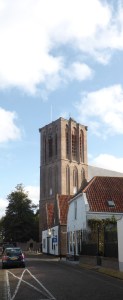 Zo ben ik terug bij het begin van de route. Er is iets meer drukte tussen de oude muren wanneer ik dwars door het oude centrum wandel. Winkeldeuren zijn open gegaan, spullen op de stoep gezet. Fraaie beelden en oude ansichtkaarten. Een uitbater controleert zijn teraas. Een enkele stoel is bezet. Duidelijke strepen op het plaveisel geven aan dat je geacht wordt aan de rechterkant van de vrije ruimte te lopen, niet een ieder heeft dit door. De viskar met de gezonde apotheek staat op de kruising van wegen. Wat zou Elburg zijn zonder deze viskar? Wanneer ik de Zuiderkerkstraat inkijk, zie ik de toren boven alles uitsteken. Ooit stond ik boven op het dak en had ik een mooi uitzicht over het stadje en de wijde en weidse omgeving. Nu blijf ik met beide benen op de grond en ga herwaarts en derwaarts.
