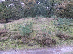 Vanuit Mossel ga ik verder en kom langs een grafheuvel. Eén van de vele grafheuvels in dit gebied. In de buurt van de plas Heidebloem ga ik over de statige en kleurrijke Heidebloem Allee. Wandelen op stand. Een enkele wandelaar kom ik in deze omgeving tegen.