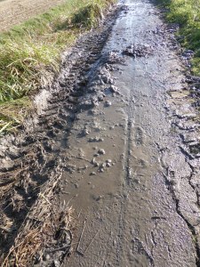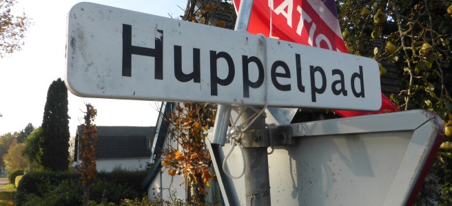 Ik passeer een enkele boerderij en dan kom ik in de bebouwde kom van Wageningen, het dorp van de Life Sciences. Wageningen is door de universiteit wereldberoemd geworden. Of het smalle asfaltpad dat ik nu in ga ook wereldberoemd is waag ik te betwijfelen. Waarschijnlijk is eerder op de dag de sloot aan mijn linkerhand gedregd. Een flinke hoeveelheid modder in meerdere vormen van hardheid en zachtheid ligt op het smalle pad. Een hardlopende jongeman passeert mij met kunst- en vliegwerk, dansend van de ene droge plek naar de andere graspol en verdwijnt uit mijn zicht. Ik ga langs de nieuwbouw (binnenkort door de nieuwbouw, want er wordt enthousiast geheid voor nieuwe woningen). Ik volg de Haarweg, met grote gebouwen voor studentenhuisvesting. Het gebied tussen Wageningen en de Grebbeberg was vanouds een gebied met fruitbomen, maar daar is weinig van over gebleven. Af en toe zie ik een paar oude bomen steun bij elkaar zoeken in deze barre tijden.