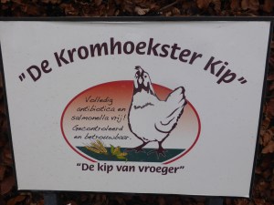 Op dit kruispunt kom ik nog een bord tegen. Dit gaat over de Kromhoekster kip. Dit is blijkbaar een bijzondere kip. “De kip van vroeger”. Een iets minder oude kip spreekt mij ook wel aan. maar het gaat niet om de ouderdom van de kip, maar om een leefwijze van de kip die oude papieren heeft. Zonder gebruik van antibiotica en de kip is vrij van salmonella en ESBL. Een mooi kruispunt met een andere kijk op boeren.