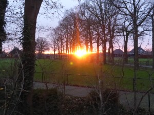 Het Datselaarsepad maakt een omtrekkende beweging rond het kleine dorp Renswoude, dat bekendheid heeft gekregen door als kleine gemeente de stemmen bij verkiezingen snel te tellen en door te geven aan Herman de Schermman. vanaf de start van de route ga ik in noordelijke richting en loop ik over de Liniedijk en zie het nieuwe landgoed van Wittenoord. Ik loop zelfs over de Wittenoordseweg, die niet gelijk oploopt met de liniedijk. De Barneveldsestraat steek ik over en ga verder over de dijk. De zon komt op en geeft een mooi beeld bij het landschap, dat in de kaalheid van de tijd langs mij heen gaat.