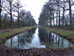 Ah, ik kom langs camping De Grebbelinie, waar ik mijn start maakte op het Nederwoudsepad. Trouwens de Nederwoudsebeek stroomt ook hier. Het is nog even rustig als toen. Een enkele hardloper (voorzien van geluidsapparatuur) en hondenfluisteraars. Ik steek Fort Daatselaar over, de naamgever van dit pad. Even verder steek ik de Lunterse Beek over en volg de lange rechte dijk, die mij steeds verder naar het zuiden brengt. Ter hoogte van het recente landgoed Roodselaar en na het oversteken van de Fliertse Beek verlaat ik de Slaperdijk. Plots sta ik aan de kop (of aan het einde) van een Grand Canal. Een kanaal dat nergens naar toe gaat. Sommigen hebben een perceel grond waar je zo iets kunt aanleggen. Van niks naar nergens. Maar het ziet er wel mooi uit. De bomen spiegelen zich in het water en strijken de laatste takken en bladeren van hun haardos recht. Het Grand Canal is 700 meter lang en ligt in het verlende van de oprijlaan van kasteel Renswoude. Doorsneden door de provinciale weg. Daar heeft iemand met gevoel voor landschappelijke elementen over nagedacht. Ooit liet een dame van het kasteel dit kanaal aanleggen om de werkloosheid in Renswoude te bestrijden.