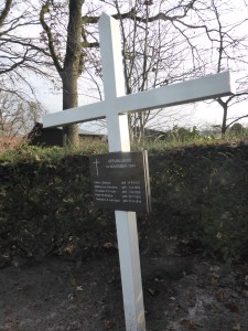 Wanneer De Dennen aan de einder gloort tref ik weer een monument dat mij brengt naar afschuwelijke tijden. Een wit houten kruis en een bordje met 5 namen. In de eerste maand van de oorlog werd hier zwaar gevochten, maar ook later in de oorlog werd hier zwaar geleden en gestorven. In de laatste november van de oorlog werd in Renswoude een Duitse militair door het lokale verzet gedood. Als repressaille werden vijf gevangenen uit de stad Utrecht naar de dijk gebracht en neergeschoten.