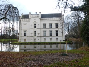 Om niets van mijn wandeling te missen ga ik verder, steek de Dorpsstraat over, waar een zeer lawaaiige brommer de Dorpsstraat onveilig maakt. Nog even en dan is de brommer uit het zicht, maar niet uit het gehoor. Door een poort komt ik op het erf van Huis Scherpenzeel. Het Park rond het oude huis is in de afgelopen jaren flink onder handen genomen. Naast het park is er ook nog het landgoed met meerdere boerderijen. Het landgoed is particulier bezit. Het monumentale Witte Huis werd door de familie in 1975 geschonken aan de gemeente Scherpenzeel en functioneert als gemeentehuis.
