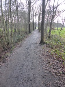 Het aantal wandelaars neemt toe, ook vergezeld van trouwe viervoeters die alle kanten uit willen. Het gezag van de begeleiders wordt danig op de proef gesteld. Gelukkig breekt de zon door en slaan wandelaars met hond af. Over de Broekerweg gaat het in gestrekte pas naar de Grebbelinie. Gelukkig is hier op deze weg geen laag moerassig land meer zodat ik rustig door kan lopen. De namen van de boerderijen zijn afgeleid van ‘Broek’, bijvoorbeeld boerderij Het Tweede Broek. Zo reed men in voorbije tijden met paard en wagen over een hoger gedeelte van ene boerderij naar de andere.