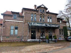Wij gaan verder door het bos, het Roosterbosch. Dit bos kent meerdere rechte lanen, handig wanneer je een rooster wilt maken. Gelukkig zijn er ook smalle kruip-door-sluip-doorpaadjes. We komen na het bos weer in de bewoonde wereld, weer in zo’n ruim opgezette woonwijk, waar huizen staan met torentjes. Zo kunnen de bewoners hoog blazen. Het enige geluid dat nu tot ons doordringt is het geluid van de spooromroepster die iets roept dat niet voor ons van belang is. We geraken terug bij De Generaal. Een vrouw staat in de houding bij het bordes en neemt na de groet een paar porties frieten in ontvangst. De Generaal kan tevreden zijn. De officiersmess zorgt voor goede patatten.