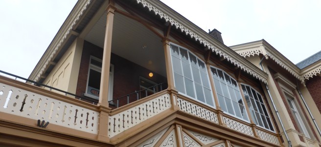 Wij gaan verder door het bos, het Roosterbosch. Dit bos kent meerdere rechte lanen, handig wanneer je een rooster wilt maken. Gelukkig zijn er ook smalle kruip-door-sluip-doorpaadjes. We komen na het bos weer in de bewoonde wereld, weer in zo’n ruim opgezette woonwijk, waar huizen staan met torentjes. Zo kunnen de bewoners hoog blazen. Het enige geluid dat nu tot ons doordringt is het geluid van de spooromroepster die iets roept dat niet voor ons van belang is. We geraken terug bij De Generaal. Een vrouw staat in de houding bij het bordes en neemt na de groet een paar porties frieten in ontvangst. De Generaal kan tevreden zijn. De officiersmess zorgt voor goede patatten.