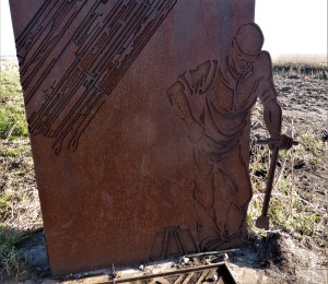 De marges zijn smal om te lopen, voor de wankele wandelaar zijn op gezette tijden bankjes neergezet, de meeste met een plaatje met inscrptie: een bankafschrift. Vroeger werd in de zodden turf gewonnen. Ik herinner mij nog de blokken turf die je in de kachel kon doen. Dat wilde wel branden en verwarmen. Als eerbetoon aan de turfstekers staat een ode in cortenstaal aan de kant van Westbroek. De route slingert door een restant van moerasbos. Pas op om van het pad af te gaan, het kan drassig zijn. Dan ben ik aan het inde van het Bert Bospad en wandel ik Westbroek binnen, een langgerekt dorp, met fraaie huizen en boerderijen die het lint omzomen.