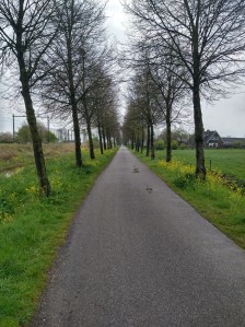 Ik steek de spoorlijn tussen Houten en Culemborg over en ga de Terwijkseweg in. Een lange rechte lijn, geflankeerd door bomen. Rechts van de weg lag vroeger het kasteel van Schalkwijk. De grachten zijn opgegraven en de tuin van de oude jonker is door vrijwilligers in ere hersteld, uiteraard vol met vergeten groenten en vergeten bloemen, naar verwachting. Jonker Ram woonde hier in vroegere tijden, zodat dit tuintje geen volkstuintje is, maar een adeltuin. Een man laat er zijn hond uit. Na de laatste boerderij aan de weg gaat de weg over in een fietspad, waar een wandelaar ook welkom is. Omgekeerd is dat niet altijd het geval.