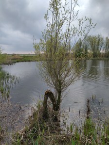 Lang geleden overnachtte ik eens in Schalkwijk. In een huisje aan de dijk. De volgende dag wandelde ik met Wandellief (die toen andere namen droeg) in de bijtende kou op de Lekdijk. Zij kwam uit warme streken. De wind waaide vrieskou voor zich uit. Nu ben ik weer in Schalkwijk bij de Lekdijk en de zon schijnt. Schapen staan in de uiterwaarden waar ook het pad loopt. Een boom groeit in haarspeldbochten. Voor mij lopen twee mannen en een vrouw die mij vooruitsnellen, eerst door het Werk en nu door de uiterwaarden. Aan de overzijde ligt Everdingen en de kerktoren is een baken langs de Lek. Op het water is geen file. Zelfs de pont ligt stil aan deze oever. De route gaat door een geitenweitje (zonder geiten), in andere tijden kun je een waterpistool meenemen om opdringerige geiten op afstand te houden (als daar maar geen Kamervragen van komen). Ook is het mogelijk om met geiten (welke?) te gaan wandelen onder leiding van de bokkenpiloot.