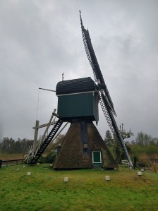 Dan is daar ineens de dwarsdijk. Deze dwarse dijk leunt tegen de Tienhovensche Plassen. Er is wat bebouwing in de ruimte. Huizen die ademen. Aan het einde maakt de waterwipmolen De Trouwe Waghter haar aanwezigheid bekend. Door de tweede wereldoorlog kreeg de molen deze naam. De molenaar maakte gebruik van de gebarentaal van de molen om de leden van het verzet berichten te sturen. Geen slag in de lucht, maar een teken aan de wand. Twee bochten verder komt een jonge vrouw aanlopen. Zij draagt op haar rug een rugzak annex fietstas. In haar beide handen houdt zij een opengevouwen landkaart. Tijdens haar ferme stappen vouwt zij de kaart op en steekt deze in haar linkerjaszak. De kaart steekt met haar bovenzijde net boven de rand van de jaszak uit. Zo houdt de kaart in de gaten of de vrouw die bij haar inwoont wel op koers blijft in dit waterrijke gebied. Nog een paar passen en de vrouw en de kaart zijn voorbij. Op de kanaaldijk wandel ik op de grens van Noord-Holland en Utrecht. Naast de dijk ligt het Tienhovensch Kanaal, een lang kanaal dat niet alleen zorgt voor noodzakelijke afwatering, maar ook een kanaal dat ooit de verbinding zocht met Amsterdam om daar de mensen die het konden betalen te voorzien van turf. Maar dit projekt liep vast in het golvende Gooi.