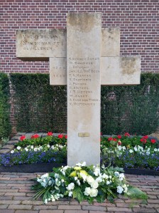 Ik begin ook deze route bij het Museum Nijkerk in de Venestraat, vandaaruit ga ik door de Venestraat en de andere bekende straten van de binnenstad van Nijkerk. Van straat naar straat, van struikelsteen naar struikelsteen. Op de Bruins Slotlaan ligt een tulp naast één enkele struikelsteen. Een stil eerbetoon aan een verzetsman. Op de hoek van de Vetkamp en de Vrijheidslaan staat een monument. De bloemen liggen aan de voet van het kruisvormige monument. Hier worden militairen die in dienst waren van het Koninkrijk (1940-1945) en verzetsstrijders herdacht. Twaalf namen staan gebeiteld in het ontwerp van J.L. Esinkbrink. Sommige van deze namen hebben ook een Struikelsteen gekregen in Nijkerk en omgeving. Sinds 1982 staat het monument hier om te herinneren aan wat er is gebeurd. Om te herinneren aan de levens die zijn afgebroken, in de knop gebroken, hoeveel bloemen je ook neerlegt aan de voet van het monument.