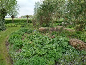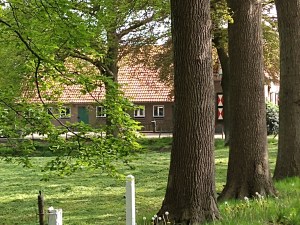 Ik wandel door het openstaande hek en vervolg mijn weg door het parkachtige bos, dat ooit behoorde aan de Havezate De Gelder. Ooit stond er een groot huis, maar dat werd tijdens de eerste wereldoorlog met de grond gelijk gemaakt en nooit meer hersteld. Wat rest zijn een paar bijgebouwen die de tijd hebben getrotseerd. Deze staan fier overeind en gaan vergezeld van een paar kanonnenn die in onbruik zijn geraakt. Ik steek de ‘Onder de Gelder’ over en kom op een lange laan, één van de vele lange lanen op deze route. Langs beide zijden staan grote struiken die wachten om in kleuren uit te barsten. In de beschrijving staat dat ik het eerste pad linksaf dien te gaan en dat het paaltje slecht zichtbaar is. Voor mij is, ondanks enig zoekwerk, het paaltje volledig onzichtbaar. Toch ga ik het pad in, even verderop raak ik de weg kwijt. Tractorbanden hebben diepe sporen in het pad en daarbuiten nagelaten. Sporen gevuld met regenwater. In de buurt van die sporen raak ik het spoor bijster. Hup de route op mijn telefoon er bij en door struikgewas kom ik weer op het rechte pad. Het is toch even wennen met een netwerkwandeling. Maar de rest van de wandeling gaat het goed met de paaltjes en met mijn opmerkzaamheid.