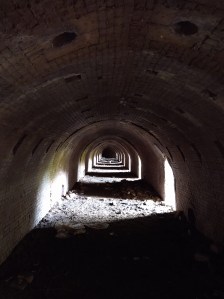 Ik vind een tijdelijke schuilplaats in de oude vlamovens van de steenfabriek die hier was gevestigd. Deze omgeving heeft een eeuwenlange traditie van steenbakken. De vlamovens en de hoge stenen toren zijn stille getuigen. In mijn schuilplaats zie ik het licht binnenvallen. De kust is veilig wanneer ik verder ga. Nog even en ik beklim de uitkijktoren met zicht op de IJssel en Veessen en de molen. Ook zicht op de volgende regenbui die losbarst. De sterke wind zie ik niet, maar voel ik wel. Via de andere trap ga ik naar beneden. Onderaan de trap doe ik de regenhoes om mijn rugzak en berg mijn wandelgids op. Vanaf nu zal ik op de route op mijn telefoon kijken.