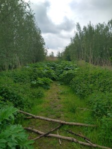 In onze ontdekkingtstocht door Flevoland gaan Wandellief en ik naar de Oostvaarderplassen. We gaan naar het Informatiecentrum van Staatsbosheer aan de Knardijk. Onze route start hier vlakbij. Het is geen route van Staatsbosheer, maar komt wel door hetzelfde gebied waar dit Beheer ook routes heeft uitgezet. In de oksel van de Knardijk en de spoorlijn gaan we op pad. Eerst over een verzameling houtsnippers, maar na korte tijd zijn wij niet langer versnipperd. Afgezien van een enkele trein die ons passeert (op veilige afstand) is het rustig, afgezien van de vele vogels die luid en duidelijk hun aanwezigheid kenbaar maken. Na ongeveer twee kilometer wandelen met de geur van meidoorn in onze neusgaten komen we aan bij observatiehut De Roelruiter, net nadat we zijn ingehaald door een hardloper (een geelgroene hardloper, die vrij zeldzaam is in dit gebied). We konden nog net zien dat het een mannetje is. De vrouwtjes zijn wat minder kleurrijk uitgedost.