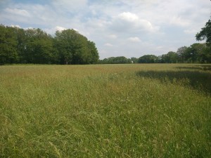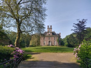 Het landschap is zeer afwisselend. Ik vermoed dat het mede komt door de vele landgoederen die hier zijn. Veel bosgedeelten, houtwallen, kleurrijke velden. Nog lang niet overal is al gemaaid. Er groeit wat er kan groeien. Vogels laten zich nog steeds horen, alhoewel minder dan aan het begin van mijn wandeling. Zo meander ik voort langs oude boerderijen. Ik ben al langs Gerven gekomen, nu ook langs Groot Gerven en Blarinckhorst en Klein Boeyen. Aan het einde van de Bussenweg fietst een moeder met een klein kind achterop en een dochtertje op haar eigen kleine fiets. Plots roept de moeder naar het fietsende dochtertje: ‘Er is hier stromend water.’ Ik hoor het water klateren. ‘Zullen we stoppen en in het water spelen?’ Het meisje maakt op haar fietsje een mooie beweging in het mulle zand om terug naar haar moeder te gaan. Klein geluk op de Bussenweg.
