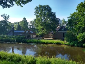 Ik neem een foto van de brede beek, waar ooit boten voeren.