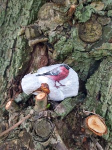 De wandeling brengt mij eerst door de bebouwde kom en daarna door een ruim opgezet bedrijventerrein, met daartussen woningen. Bij een mooi bedrijf worden grote gesloten bakken gemaakt om achteraan een fiets te plaatsen om spullen te vervoeren. Mooi voor pakketbezorgers. Dat er hier een bedrijventerrein is is niet verwonderlijk. Ten zuiden van Heeten was er in de Romeinse tijd al een bewoning met daarbij meerdere ijzerovens. De Poelweg brengt mij eerst slingerend langs de zuidkant van het bedrijventerrein, om dan in een rechte lijn naar het zuiden te gaan. Op de hoek van slingerlijn en rechte lijn staat een boom. In de boom is een steentje geplaatst, een mooi steentje met geschilderde vogeltjes er op. Even overweeg ik om deze vogeltjes in mijn rugzak te stoppen, maar ik laat de vogeltjes toch in hun boom. Dan kan een ander er ook van genieten.