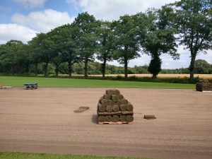 Ik ga verder naar het noorden en blijf net buiten de Heidenhoek, hier vonden de heidense Achterhoekers een woonstede? Wel passeer ik de Heidenhoekse Vloed, het is geen Grote Vloed, zodat ik met droge voeten langs de Vloed kan lopen. Het landschap is zeer afwisselend met agrarisch land (zelfs graszoden groeien hier goed), houtwallen, bospercelen en smalle zandpaden, slingerende beken. Op andere percelen zijn grote landbouwmachines bezig om het gemaaide gras te keren of om het gedroogde gras op te halen. Voer voor de koeien, de voorraad kuilvoer kan worden aangevuld. Jonge gezinnen fietsen stoer op zandwegen. Een enkele amazone komt mij tegemoet, vergezeld door haar moeder op de fiets. De groei van de paardensector lijkt door geen recessie of corona afgeremd te kunnen worden. ‘Doet u mij maar één paard.’ ‘Zal ik hem inpakken of neemt u hem zo mee?’ Minder maisland en minder raaigrasland en meer paardland. .