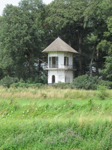 Het aantal fietsers neemt gestaag toe. Ook komen meer en meer wandelaars in de benen. Ruim een kilometer volg ik de noordelijke oever van de Berkel. Hier geen fietsers, die zijn een andere kant opgestuurd. Na vijf kilometer kom ik bij de Boevinkbrug. Hier moet ik even de plaatselijke situatie goed beschouwen. Vlak voordat een fietsend echtpaar zich ontfermt over een picknickbankje neem ik een puntje van de bank in bezit. De vrouw en man hebben hun fietsen alvast klaat gezet voor een pauze. De vrouw drentelt heen en weer, de zwaar beschilderde man houdt toezicht op de Berkel vanaf de brug. Nadat ik er achter ben gekomen dat een uitstapje goed te doen is, sta ik op. De man en de vrouw bewegen zich langzaam maar vastberaden naar de verlaten bank. Ik steek de Boevinkbrug over en volg de zuidelijke oever in oostelijke richting. Eén kilometer volg ik het pad langs de rivier en dan zie ik het doel van mijn uitstapje: de Koepel van Staring. Niet Staring de dichter, maar zijn geliefde dochter Constantia Ernestine Theodora. Het herenhuis Het Draafsel, in haar bezit, was afgebroken en zij gebruikte materiaal daarvan voor de bouw van deze theekoepel. Recycling zat al vroeg in deze familie. Via een trekpontje kan ik de Berkel droogvoets oversteken en ik beklim de andere oever. Tot mijn vreugde kan ik de koepel in. Een trap en een deur wijzen mij de weg naar de eerste verdieping. Hier ontving Constantia haar vriendinnen voor een kopje thee en aanverwante zaken. Zij kon een bel luiden en dan kwam iemand uit de naastgelegen boerderij om de dames van eten en drinken te voorzien, terwijl zij koutten over het fraaie uitzicht over de Berkel en de beschikbare mannen uit hun omgeving. Dit alles op gepaste wijze voor dames van stand. Ik ben op dit moment de enige bezoeker. De balkondeur op de eerste verdieping staat open en ik kan op het balkon heen en weer lopen. Er staat geen stoel, anders had ik een kopje lauwe thee uit mijn thermoskan genuttigd, uiteraard op gepaste wijze voor een heer van stand. Ik daal af naar beneden en vervolgens naar de oever, het trekpontje schiet over het water. Op mijn weg terug naar de route kom ik een moeder en dochter tegen die op poëtische wijze op weg zijn naar de dochter van de dichter.