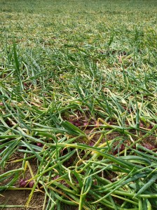 Vervolgens komen we langs een grote uienakker die zich uitstrekt in de richting van Noorbeek. Zo ver gaan wij niet want wij gaan naar Terlinden, waar we de doorgaande weg naar België oversteken ter hoogte van De Zeute Aardbei. Deze Aardbei heeft ook een terras, waar wij gisteren voordat de bui losbarstte zaten. Dan een lang gedeelte over het hoogland met akkers waar nauwelijks maïs groeit, maar wel andere gewassen.