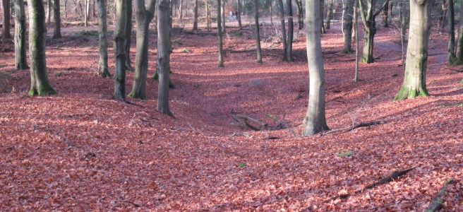 Het lijkt er op dat half Veenendaal is uitgerukt om op deze middag in het nieuwe jaar de bossen van Prattenburg en omliggende bossen in te gaan. Er is veel volk onderweg. Mensen ontmoeten elkaar en gaan op pad al dan niet met een coffee-to-go (= koffie in een bekertje). Wij gaan op pad aan de hand van één van de Veense Ommetjes. Groepen kinderen zwermen voor ons uit. Plassen worden aan een grondige inspectie onderworpen. Al stampend wordt het waterpeil gemeten. Waterbouwkundige ingenieurs in de dop. Oudere stellen lopen hand in hand, dat lukt ons niet meer, want Wandellief loopt met twee stokken, dit keer heb ik mijn houten stok thuisgelaten. Er is genoeg hout in het bos. Voordat wij er een kilometer op hebben zitten hebben wij al zicht op het kasteel, dat dateert uit de late jaren van de negentiende eeuw. Met opzet zijn er (op verzoek) enkele torentjes en kantelen bij getekend door de architect om het geheel een kasteelachtige aanblik te geven. Deze kasteelwoning staat op veel oudere fundamenten die zijn gevonden. Na twee kilometer verlaten wij het landgoed. Bij ons ben je al na twee meter buiten ons landgoed. We lopen nu op terrein van het Utrechts Landschap. Bij de volgende kilometer komen we op een belangrijk punt. Hier kunnen wij uitkijken. We staan op de Elsterkop, achter ons ligt de Elsterberg. In de verte zien wij boven de boomrand uitsteken de kerktoren van Scherpenzeel, negen kilometer naar het noorden. Volgens het informatiebord kun je ook de Lange Jan van Amersfoort zien, maar zo ver reiken onze ogen niet vandaag. Ook wij hebben onze beperkingen. We ontmoeten hier meerdere wandelaars en mountainbikers en wandelbankjes. Het is net een beetje buitenland, zegt een man met hond tegen ons. Het valt mij nog mee dat hij niet begint over een on-Nederlands landschap. Wanneer je er vanuit gaat dat heel Nederland een platte polder is, dan is een heuvelrug inderdaad vreemd en on-Nederlands. In het vervolg beter opletten bij Aardrijkskunde. Wij verlaten de Noorderlaan en na twee haakse bochten staan wij op de Middenlaan en rukken op naar de Solskuil. Dit is een kuil, zichbaar een kuil. Een on-Nederlandse kuil. Net zoals het Solsche Gat. Wat is er toch met Sol? Hier een kuil, daar een gat.