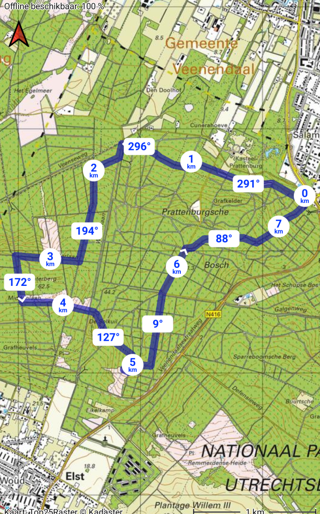 Het kompas is gericht op de Groene Entree Prattenburg. Dat is niet omdat wij er van uit gaan dat de rode loper voor ons van het parkeerterrein tot het bordes van kasteel Prattenburg is uitgerold. We hebben de familie Van Asch van Wijk zelfs niet op de hoogte gebracht van onze aanwezigheid op het parkeerterrein. Deze familie is al sinds 1694 in het bezit van Prattenburg, dat is nog van voor de tijd van Wandellief en mij. Verschil moet er zijn.