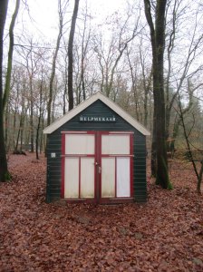 Na 23 kilometer ga ik op de grens van het Putterbosch en het Sprielderbosch op een oude boomstronk zitten. Thee en brood stal ik uit. Stilte is ruim voorhanden. Niemand gaat heen. Niemand gaat weer. Alleen mijn slokdarm beweegt. Kom op, Willem, weer op pad! Naar het noorden! Plots komt op deze zandweg een auto mij tegemoet. Ook dit is Putten. Wanneer mijn weg afbuigt naar het westen zie ik aan de zijde van de zandweg ruime opgevatte huizen tuissen de bomen staan. Een kleine houten gebouwtje draagt de tekst HELPMEKAAR. Een Volvo haalt mij voorzichtig hobbelend in. Dit zandpad heet Laak en komt uit op een N-weg die ik oversteek. Ik kom uit bij het Bosbad Putten. Hier brengt de route mij op een dwaalspoor. Om een mij onbekende reden geeft de route aan dat ik het terrein van het bad op moet gaan. Een vrije doorloop naast een tourniquet kan ik passeren. Vreemd. Dan een houten brug over en ik kom bij een parkeerplaats. Een man met kruiwagen groet mij. Hij is de hovenier. We raken aan de wandelpraat. Na zijn diensttijd heeft hij ongetraind de Nijmeegse Vierdaagse gewandeld (4×50 km), nog een Kennedymars (80 km) en in België een Dodenmars. Daarna is hij op de fiets gestapt. Ik zie plots dat het lange schuifhek tussen parkeerplaats en weg dichtschuift. De hovenier heeft geen sleutel. “De dames in het kantoor kunnen het wel openen”, zegt de hovenier. Ik loop naar de plek van het tourniquet en een vrouw staat mij te woord en zij is bereid om het lange ijzeren hek weer open te doen met een druk op de knop. Ik loop weer naar het hek toe, maar raak weer aan de praat met de hovenier. Plots gaat het hek weer dicht, snel neem ik afscheid en door de snel slinkende opening kan ik nog net aan het Bosbad ontkomen. Hovenier en ik steken een hand op ten groet.