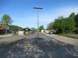 De dame gaat aan de slag en wij horen de straal kokend water de thermodrinkfles ingaan terwijl wij het ontbijt openen. De drinkflessen worden op tafel gezet. Het label van het theezakje is met een draadje verbonden aan de schroefbeker. Wij eten en drinken en genieten.Er is voldoende, meer dan voldoende, en wij krijgen twee zakjes om de twee resterende bolletjes mee te nemen als proviand voor onderweg. Ik loop met de twee drinkflessen naar onze kamer, stop deze in de zijvakken van mijn rugzak en pak de rest van mijn spullen ook in. Bij de kassa reken ik af, waar wij gedrieën nog even tevergeefs oefenen met ‘mit, nach, nebst und so weiter’ en dan gaan wij op pad. Bij de rotonde gaan wij het dorp in en kopen bij Konditorei Derks nog twee ter plekke klaargemaakte verse broodjes. We hebben voldoende bij ons voor de tocht die ons wacht.