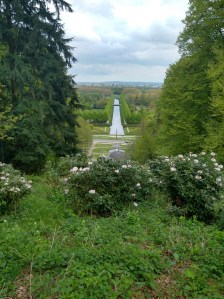 Door een redelijk groene corridor komen wij bij de Uitzichttoren op de Kleverberg. Ons uitzicht is op de toren, niet vanaf de toren. Vervolgens komen wij langs de voet van de Sternberg, die 86.5 meter hoog is. Aan de voet aan de oostelijke zijde staan twee houten bankjes zonder rugleuning vanwaar wij uitzicht hebben op een overdekte afbeelding van Maria met kind. Na een kort moment van bezinning gaan wij verder en zien dan van verre al een enorme zuil met een grote vogel er bovenop. Dat is de Duitse adelaar. Door het monument worden de gevallenen in de ‘glorierijke oorlog’ tussen Duitsland en Frankrijk (1870-1871) herdacht. Het zou zo maar kunnen dat tegenwoordig de mensen die hier staan of zitten meer belangstelling hebben voor het uitzicht op de Forstgarten dan voor de namen van inwoners van Kleve die tijdens die oorlog zijn gevallen. Wij nemen afscheid van de gevallenen en het uitzicht en gaan langs de noordelijke zijde van de Sternberg, die nog steeds 86.5 meter hoog is. Op ons pad ontmoeten wij meerdere gevallen bomen. Toch slagen wij er in om de Gruftstrasse te bereiken. Dan rechtsaf langs de drukke Dierentuinstraat met imposante panden ter linkerzijde en ter rechterzijde. Dan bereiken we het drukke voetgangersgebied van de Kavarinerstrasse met de vele winkels. Dan aan het einde van deze Strasse komt de eveneens drukke Grossestrasse. Hier eindigt het Grote Rivierenpad. Tijd voor een selfie (censuuur!). We gaan nog even kijken bij de Schwanenburg op een steile heuvel alias klif (=kleve). Dan zakken we af en wandelen terug naar de Kavarinerstrasse, waar Konditorei Wanders een wenkend perspectief biedt. Een tafeltje buiten en uit de wind. Op tafel cappuccino en masala chai, ‘gedeckte Apfeltorte’ en ‘Waldbeertorte’. Een waardig einde van ons Grote Rivierenpad.