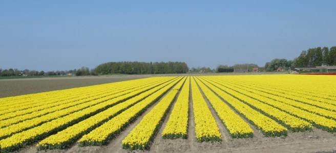 Terwijl ik bezig ben met mijn eerste boterham stappen een man en een vrouw het hek over. Zij beginnen aan hun etappe van het Groot Frieslandpad. Ik zal hen verderop de route nog vaker tegenkomen. Meerdere wandelaars komen het hek over. Ik volg het kanaal tot Nieuwe Niedorp. Aan de Dorpsstraat staan vele gemeentelijke monumenten, huizen die wijzen op een rijk verleden. Door polders en langs wateren en kleurrijke bollenvelden ga ik verder. De zon schijnt uitbundig en de grasdijken verschaffen zicht op mijn omgeving. Bij Aartswoud zie ik de Frieslandgangers weer, maar ik haak al snel weer af wanneer ik vier bankjes rond een tafel ontwaar bij het stoomgemaalmonument. Tijd voor een boterham en koel water. Mijn ene thermosdrinkfles zit vol met water. Ook Aartswoud is een lintbebouwing, maar ik ga al snel de polder in over een onverhard fietspad dat zijn weg zoekt over het hoger gelegen gedeelte van de polder. Fraaie namen kom ik tegen: ’t Blôte en het Bienepad en het Pannepad. Er staat een kleine uitzichttoren, met zicht op de uitgestrekte polders rondom. Ik wandel Lambertschaag binnen (met een lintbebouwing die in het zuiden tot aan Abbekerk strekt). Ik steek de A7 over en heb zicht op Agriport A7. Deze Agriport laat zien dat het gebied een flinke bijdrage levert aan de agrarische sector in ons land. Na gelopen te hebben langs het natuurgebied Twisk/Oostermare kom ik aan in Twisk, ook weer zo’n lieflijk dorp op mijn route. Imposante oude gebouwen en boerderijen sieren de zomen van de smalle weg. Kinderen spelen op de rand van de weg, auto’s moeten er maar met een bochtje om heen gaan. Aan de rand van de bebouwde kom ga ik zitten op een bankje om mij voor te bereiden op de laatste fase van mijn wandeling. Fietsers komen voorbij uit de richting van Opperdoes en Medemblik. Ik steek de spoorlijn over waar in goede tijden een stoomtram rijdt van Medemblik naar Hoorn. In Twisk staat een oud stationsgebouw. Het oude gedeelte van Opperdoes is treffend in aanzien. Oude huizen voorzien van een bruggetje om het water over te komen. Ene Klopper bouwt aan een huis langs de Kluiten. Ik passeer het oude kerkgebouw. Door de Kerkebuurt en over het Oosteinde en dan kom ik de spoorlijn weer tegen. Deze kan ik volgen om mijn doel voor vandaag te naderen. Nog een grasdijk en de mooie molen De Herder. Ik ben bij het stationsgebouw in Medemblik, waar met name bussen aan- en afkomen. Ik zie de bus staan, de chauffeur vertelt mij dat hij pauze heeft en wijst mij op de bushalte, even verderop. Daar staat een bankje. Ik ga zitten en drink een laatste slok koel water.