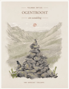 Dit boekje vol ogentroost (is lezen troost voor mijn ogen?) is onderverdeeld in drie delen. Aanloop. Verloop. Afloop. Dat zit helder in elkaar. In haar Aanloop merkt zij op dat zij tijdens het lopen vrij is van twijfel. Dan weet zij wat zij wil. Zij neemt ook in aanloop in haar eerste stappen op het pad van de lange afstanden. De klus om een goede looplijst (= paklijst ) te hebben. Zij gaat op pad met ervaren lopers op wie zij vertrouwt, een verkeerde rugzak (nog met een buitenframe en zonder heupriem). In het begin van de jaren ’80 gaat zij voor het eerst op pad met haar geliefde F. Jarenlang gaat zij op pad, met haar tentje Slak, die al 25 jaar trouwe dienst verricht. Om zich goed voor te bereiden op de meerdaagse tocht in de Mercantour maken Yolanda en F een tweedaagse tocht dichtbij de bewoonde Franse wereld. Het is een kortstondig en zeer nat avontuur.