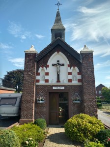 De bebouwing van Süsterseel vormt een verbindende schakel tussen twee bosgebieden. In de dorpen valt het mij op hoe weining bomen er op gemeentelijk grond staan. Een enkele boom staat in een tuin. De straten worden zo hittetunnels. Ik probeer van schaduw naar schaduw verder te gaan. Het is warm en het wordt steeds warmer. Ik kom af en toe fietsers tegen. Op goed geluk groet ik de ene keer in het Duits, een andere keer in het Nederlands. De streektaal beheers ik niet. Langs grote vijvers (visvijvers) ga ik naar het noorden, steek de B56n over. Even ver ben ik aan de zuidkant van Höngen tegenkom. Een kapel is gewijd aan de Heilige Geest, een boer sproeit water, hitte blaast door de straat. Ik ga verder naar de noordkant van het dorp. Op een pleintje zie ik een uitgestorven terras. Andere tekenen van horeca maken ook een verlaten indruk. Buiten het dorp staat een Mariakapel, terwijl ik daar naar toe loop zie ik man met ontbloot bovenlijf boven op een bouwproject staan. In de brandende zon. Ik zoek nog wat meer schaduw op. De bankjes bij de kapel staat beiden in de zon. Aan de schaduwzijde ga ik met mijn rug tegen de koele muur zitten. Ik neem mijn tijd.