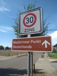 Tijdens de eerste nacht van deze tocht sliep ik op zolder. De tweede nacht slaap ik in de kelder. Zo’n Duitse kelder die de hele begane grond draagt. Allerlei ruimtes en ik heb het rijk alleen. De ochtend beginnen met een koude douche. Dan voorzichtig opruimen en mijn rugzak inpakken. Daarna kan ik een keuze maken uit de ontbijtspullen die in de kastjes en de koelkast staan. De heer des huizes zet nog een doos met vers brood en een warm ei om de hoek van de deur. Er is voldoende. Opruimen. Tas om de schouders. Buitenom de trap op, afscheid nemen van de gastheer en ik wandel door het rustige Gangelt.