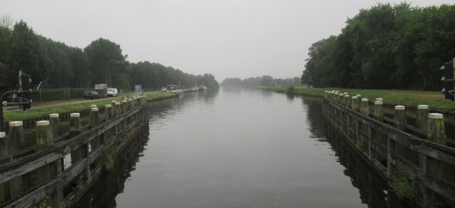Annen ligt om de hoek, maar ik ga via de rotonde. Het smalle pad dat ik volg herbergt plots twee nette fietsparkeergelegenheden. Waarom hier? Dan blijkt dat achter de bossage een hunebed verstopt is. Het is D9. Deze D9 heeft dienst gedaan als portaalgraf, maar ook als informele fietsenstalling, bij de bushalte. Fietsers van Annen deinzen nergens voor terug. Het smalle pad vervoert mij achter huizen en langs sportvelden. Een coach (of ouder?) roept instructies naar ene Willem, ik loop stilletjes door. Dan kom ik bij de Brink. Wat is een Drenths dorp zonder Brink? Alsof de benaming ‘Brink’ niet voldoende is in Annen, is er de naam van de beroemde aardrijkskundige Roelof Schuiling aan verbonden. Hij is geboren te Annen en werkzaam geweest in die fraaie Hanzestad Deventer. Deze man had zijn topografie op orde. Verderop langs de weg die Brink heet is een groot open terrein omzoomd door oude bomen. Er wordt druk gewerkt om een feestterrein te maken van de open ruimte. Een openbaar toilet (met twee afdelingen) is al kant en klaar neergezet. Ik loop het dorp uit en ga naar het waterwingebied Breevenen. De Nijedijk verwelkomt mij en langs een voor mij naamloze vaart ga ik van de gebaande weg af. Een apenbrug nodigt mij uit om de oversteek te wagen, maar gelukkig gaat de route niet over deze brug die uit drie draden bestaat. Een draad voor mijn linkerhand. Een draad voor mijn rechterhand. Een draad voor mijn beide voeten. Door naar de Duunsche Landen waar ik zowaar een wandelaar (met uitgebreide rugzak) tegenkom. Aan de rand van de Hunze of Oostermoerse Vaart (het was blijkbaar moeilijk om één van beide namen te kiezen) staat een picknickbank waar ik zitting neem. Fietsers komen voorbij, tevens een starende hond, die slechts met veel inzet door zijn bazin op sleeptouw genomen kan worden. Egberts Lent (van het Drenths Landschap) ga ik later voorbij en dan kom ik langs de Annerveensche Mond of Annerkanaal (ook hier is het weer moeilijk kiezen). Het landschap is veranderd. Hier bij Nieuw Annerveen, het Annerveenschekanaal (met vlakbij een leuk opengesteld privé-park) en de Westerdiepsterdallen en het Westerdiepsterdallenkanaal is het land vlak en uitgestrekt, rechte sloten en rechte andere waterwegen. Hier steek ik ook de Semslinie over. Het is een oude grens tussen Drenthe en Groningen die loopt van het Zuidlaardermeer naar Ter Apel. Het is de oudste (sinds 1615) lijnrechte grens ter wereld. Er was doorgaande ruzie tussen Drenthse en Grunniger veenboeren over de juiste grens en deze rechte lijn moest daar een einde aan maken. Zo ben ik aangekomen in het veen en in de veenkoloniën.