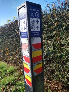 Bij een bushalte in het roerige centrum van Hoenderloo is zojuist een bus gestopt. Twee wandelaars zijn uitgestapt. Zij maken zich op voor een wandeling, bekijken papieren, stellen electronica af. Wij zoeken een plek om onze auto achter te laten in de buurt van onze startpositie. Ook wij kunnen nu op pad, in noordelijke richting gaan wij de Spelderkampweg op.