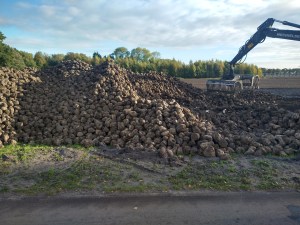 Eén chauffeur en één passagier in de bus die mij naar halte Langestraat (Wedde) brengt. Niemand komt er bij. In Wedde gaat de chauffeur verder zonder mij, zonder passagier. Vanaf de halte ga ik van start in het stille dorp. Van de overkant knikt een oude man met een witte baard naar mij. Het dorp laat ik achter en ik ga naar de route die vlakbij het grensgebied van Wedderheide en Vriescheloo ligt. De route gaat het ene na het andere bosgebied, een vrouw met tas loopt mij tegemoet. Zij zal hier geen boodschappen doen. Kastanjes verzamelen? Beukennootjes? Eikels? Op weg naar Klontjebuurt zie ik de eerste tekenen van de bietencampagne. Eerst komen twee volgeladen voertuigen mij tegemoet. Dan waarschuwt een bordje in de berm mij ‘pas op slik’. Even verderop grijpt een grote grijper in de hoop suikerbieten, als een wijdopen mond waar een suikerklontje in verdwijnt. Een personenwagen rijdt voorzichtig door de brede grasberm. Dan is daar de Klontjebuurt.