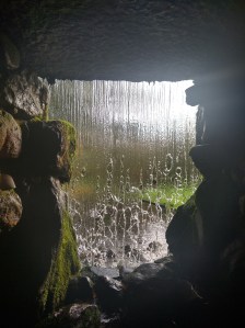 Op de Diependalselaan treffen wij een lange tafel en een bijpassende lange zitbank. Wij slagen er in om met z’n tweeën de hele bank in bezit te nemen. Tegenover ons ligt achter bomen Het Dorp. Velen zijn nu bezig met een lunchwandeling. Wij zijn bezig met onze lunchzitting. Langs Hoeve Klein Mariëndaal (inclusief theehuis en ezels) komen wij in de bebouwde kom van Arnhem. Over de Heijenoordseweg komen wij bij het spoor dat wij volgen tot aan het station van Arnhem Centraal. Een oudere man veegt zijn stoepje schoon van bladeren. Dat doet hij tweemaal daags. Nu heeft hij veel werk aan de bomen voor zijn huis, maar in de zomertijd zorgen de bomen voor veel koelte. Hij heeft het door. Bij het station slaan wij af en komen over oude straten en langs hoge huizen en daar is dan Park Sonsbeek. Op een bankje gaan wij even zitten en genieten van het gedruis. Moeders met kinderen, wandelende stelletjes, geparkeerde fietsen. Even verderop staat bij de zwanenbrug een ijscokar met een aanzienlijke schare liefhebbers. De route gaat niet langs of door of onder de waterval. Een omissie met de proporties van een Gelders kasteel. Gelukkig wordt in de routebeschrijving wel gewezen op deze waterval en op welk punt van de route de wandelaar dient af te buigen. Park Sonsbeek bezoeken zonder de waterval bezocht te hebben is een contradictio in terminis. Een oud Italiaans gezegde luidt dan ook: Eerst de waterval van Park Sonsbeek zien en dan sterven. Jong en oud is aanwezig bij het vallende water. Een vader probeert zijn zoontje bovenlangs te leiden, maar ik wijs het jongetje op de mogelijkheid om achterlangs de waterval te gaan. De vader probeert te lachen, het jongetje is al verdwenen om aan gene zijde boven water te komen. Dan gaan wij half om de Grote Vijver heen en volgen een waterweg, dan langs het Gouverneurshuisje en langs het Huis en dan zijn wij terug.